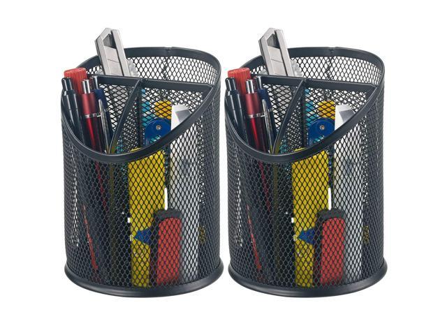 Bonsaii 2 Pack Round Steel Mesh Pen Pencil Desk Holder Organizer 3 Compartments Black W6809 Newegg Com